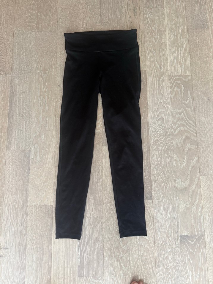 Siyah renkte, sentetik kumaştan üretilmiş, velcro detaylı, spor ve günlük kullanıma uygun kadın tayt.