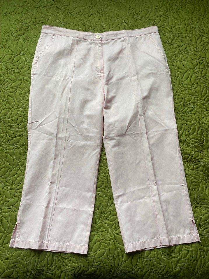 Ürün çok az kullanılmıştır. Hiçbir kusuru ve defosu yoktur. Etiket bedeni 44’dür ancak dar kalıptır, 42 bedenle uyumludur. Uçuk pembe renktedir. Sıcak havalarda kullanım için idealdir. Paçasında ufak bir yırtmaç detayı bulunmaktadır. Terletmeyen pamuklu kumaşa sahiptir. Güncel bedene uymadığı için satılıktır.