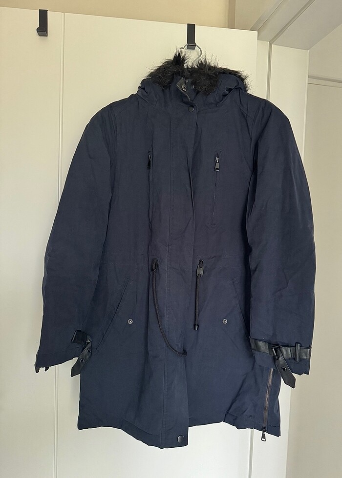 Deri görünümlü yerlerinde soyulma var onu. Dısında sağlam ve temiz. Az giyildi sıcak tutuyor
