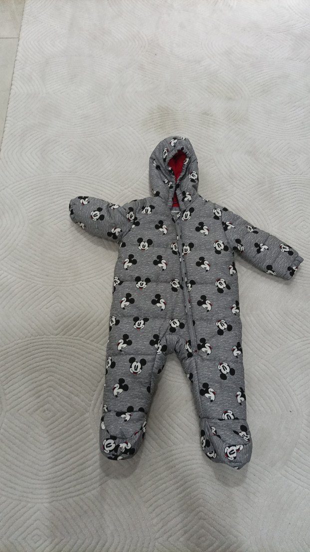 Kapüşonlu, örgü gri bebek tulumu, desenli baskıya sahip, bebeğinizi sıcak tutar. ❄️