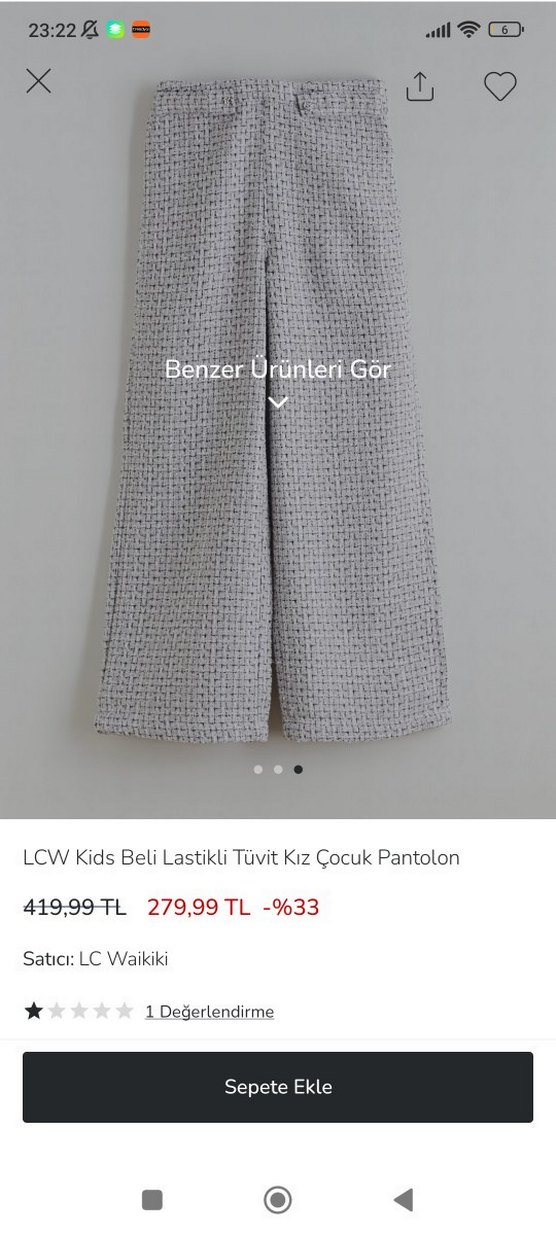 LCW Kids Gri Lastikli Tüvit Kız Pantolon etiketi üstünde