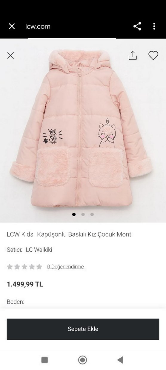 Füme detaylı, kapüşonlu ve nakışlı pembe kız mont, sıcak ve yumuşak kumaştan yapılmıştır. Trend sokak giyimine uygundur ufak bir lekesi var sadece 4 defa giyildi.