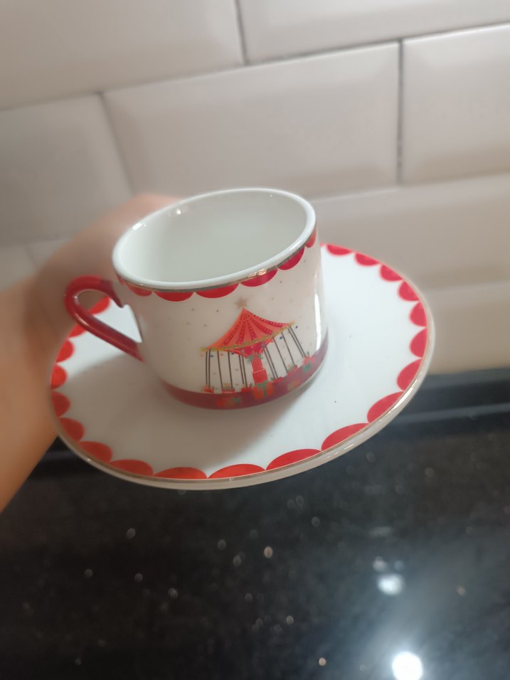 lcw Kırmızı Detaylı Desenli 2'li Fincan ve Tabak Seti