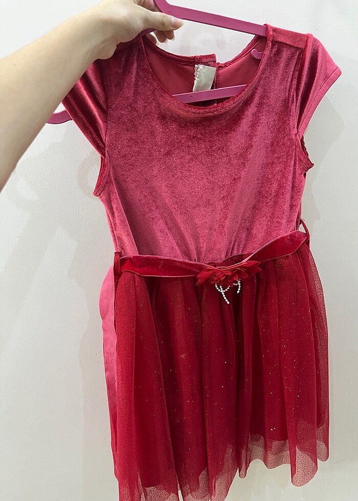LCW kırmızı çiçekli kemerli 7-8 yaş kız çocuk elbise