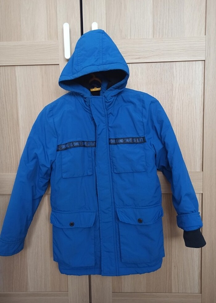 Polar astarlı,fermuar kapamali. Su ve rüzgar gecirmez Kalın dolgulu,sabit şapkalı. Hasarsız.