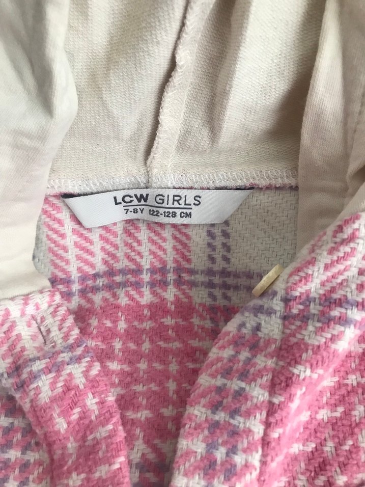 LCW kız çocuk pembe yün ceket, düğmeli ve geniş kesime sahiptir. Notlu yakası ve pastel desenleriyle trend sokak stiline uygundur. 7-8 yaş, 122-128 cm.