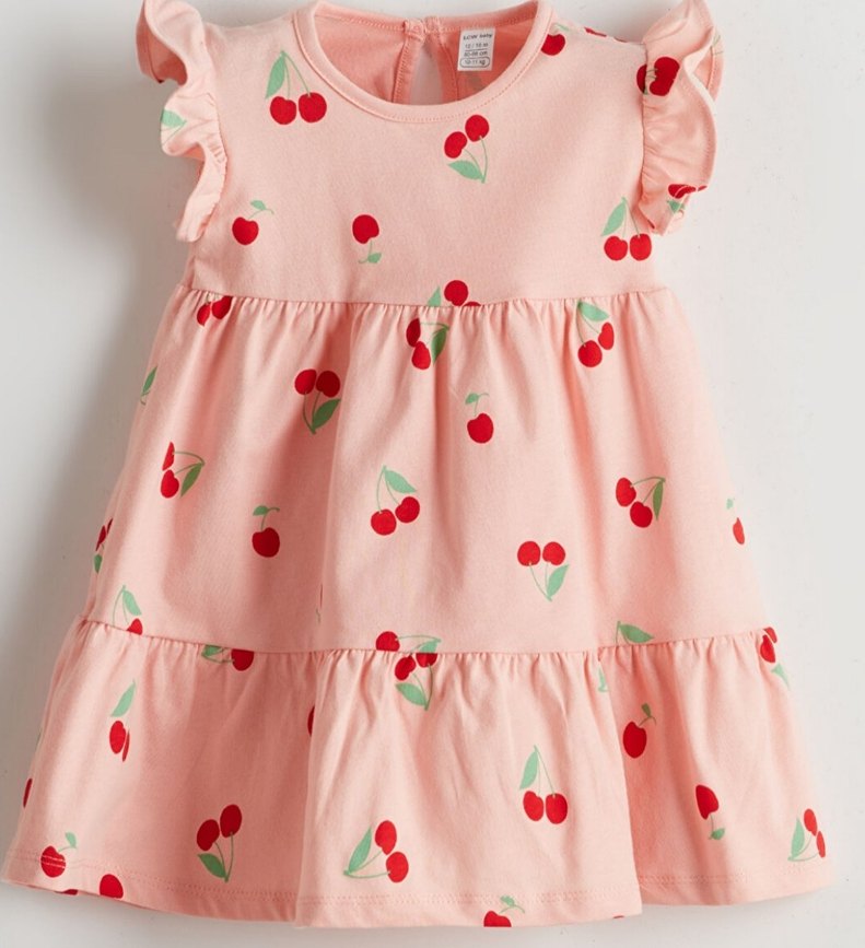 LCW Kız Çocuk Kiraz Desenli Fırfırlı Elbise