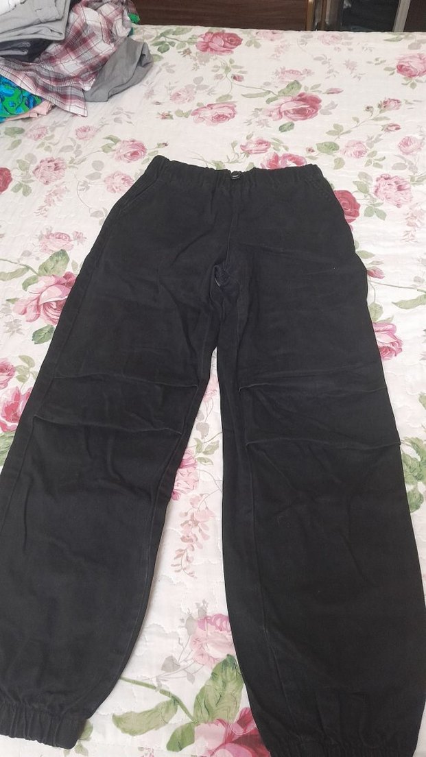 Siyah bol kesim rahat kot pantolon. 9 10 yaş. Paçalaro lastikli. Boy 86 cm