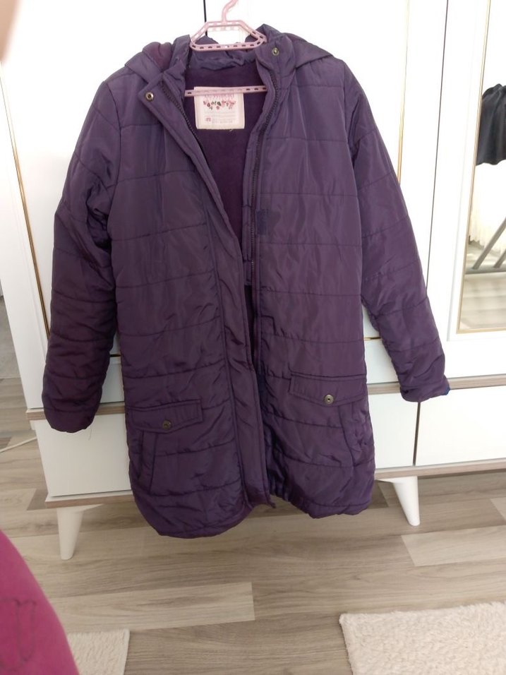 Düğmeli, uzun kollu ve kesimli mor mont, yumuşak ve sıcak kumaştan üretilmiştir. Midi boyda, sade tasarımıyla günlük kullanım için uygundur.