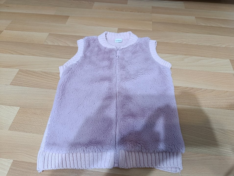 Kız çocuklar için pudra pembe renkli, peluş detaylı kolsuz yelek. Dar kesim ve bisiklet yaka ile rahat kullanım sağlar.