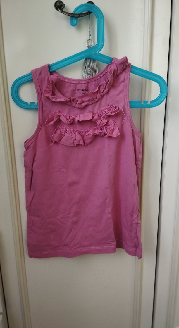 LCW Kız Çocuk Pembe Kolsuz Fırfırlı Tişört 7-8 yaş