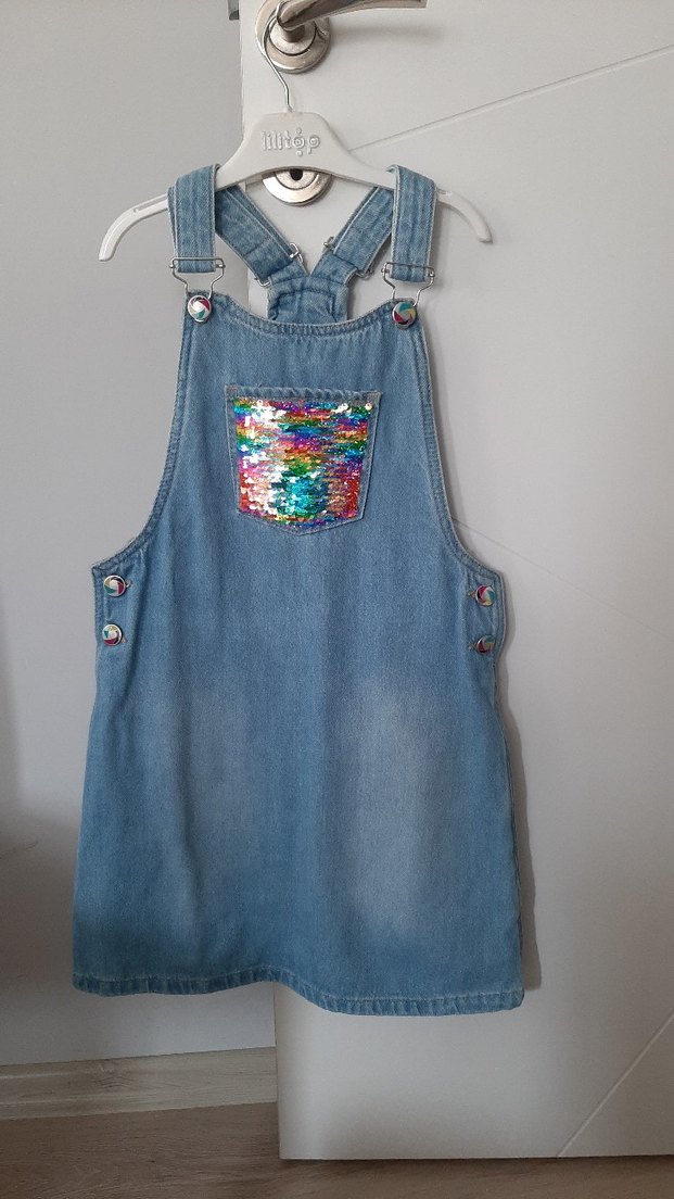 #lcw renkli payetli cepli kot salopet elbise. Temiz ve sayılı giyildi.