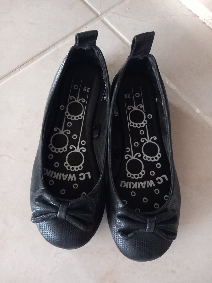 29 numara temiz kullanılmış kız çocuk için siyah babet.Ayakkabının uzunluğu 19 cm.dir