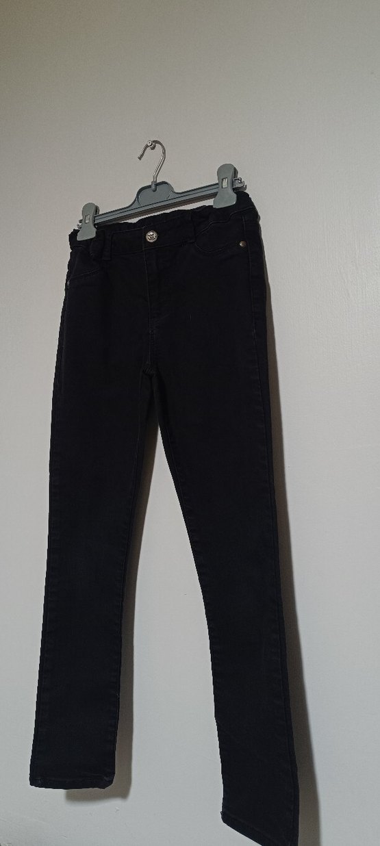 LCW Düğmeli, regular fit siyah denim kız çocuk pantolonu. Sokak stili için uygun, desen içermeyen koyu renkli dar paça jeans