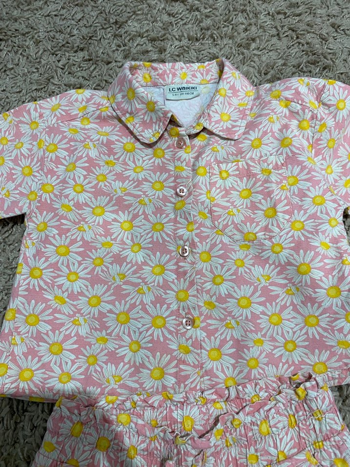LCW kız takım Düğmeli Papatya Desenli Kız Gömlek