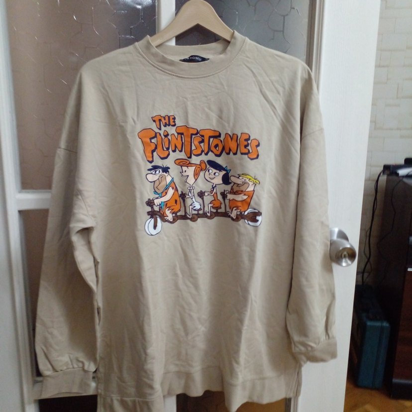 ürün cok iyi durumda bej renk bisiklet yaka uzun kol önü renkli resim baskılı boy 72 omuz 26 kol 47 kolarası 63