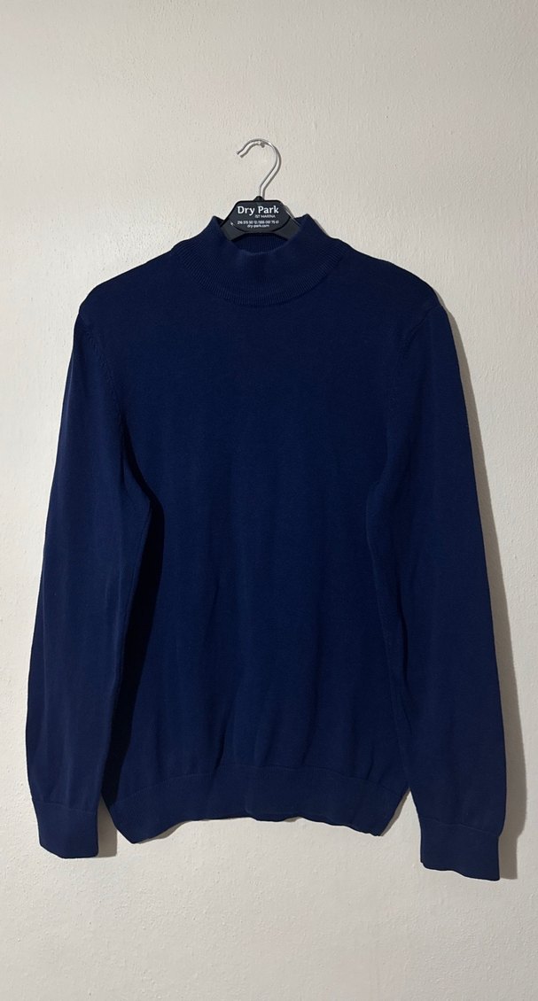 Lacivert erkek kazak, yüksek yakalı ve uzun kollu, örgü dokulu ve normal kesimlidir. Yumuşak, sıcak kumaşlı, sade ve minimalist tarzda, günlük kullanım için uygundur. Kusursuz Defosuz %100 pamuk M beden