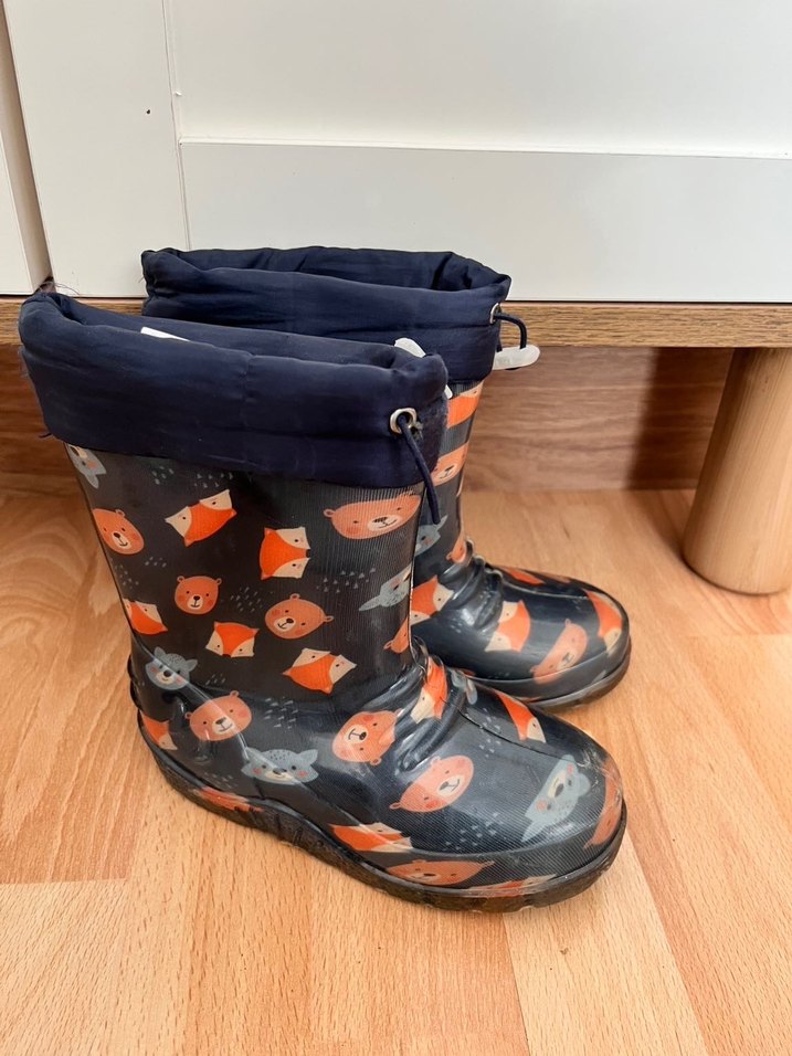 Lacivert baskılı, tokalı ve kauçuk malzemeden yapılmış erkek çocuk çizmesi, sokak stili için uygundur.