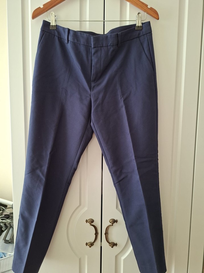 Lacivert kadın kumaş pantolon, normal boy ve regular fit. Ofis için uygun, düz ve sade tasarımıyla şık ve rahat bir görünüm sunar.