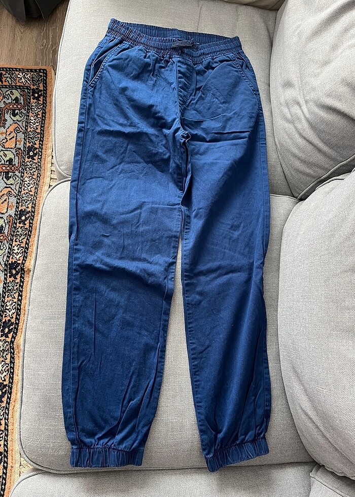 LCW marka, lacivert renkli, beli ve paçaları lastikli, mevsimlik kumaş pantolon 13/14 yaş