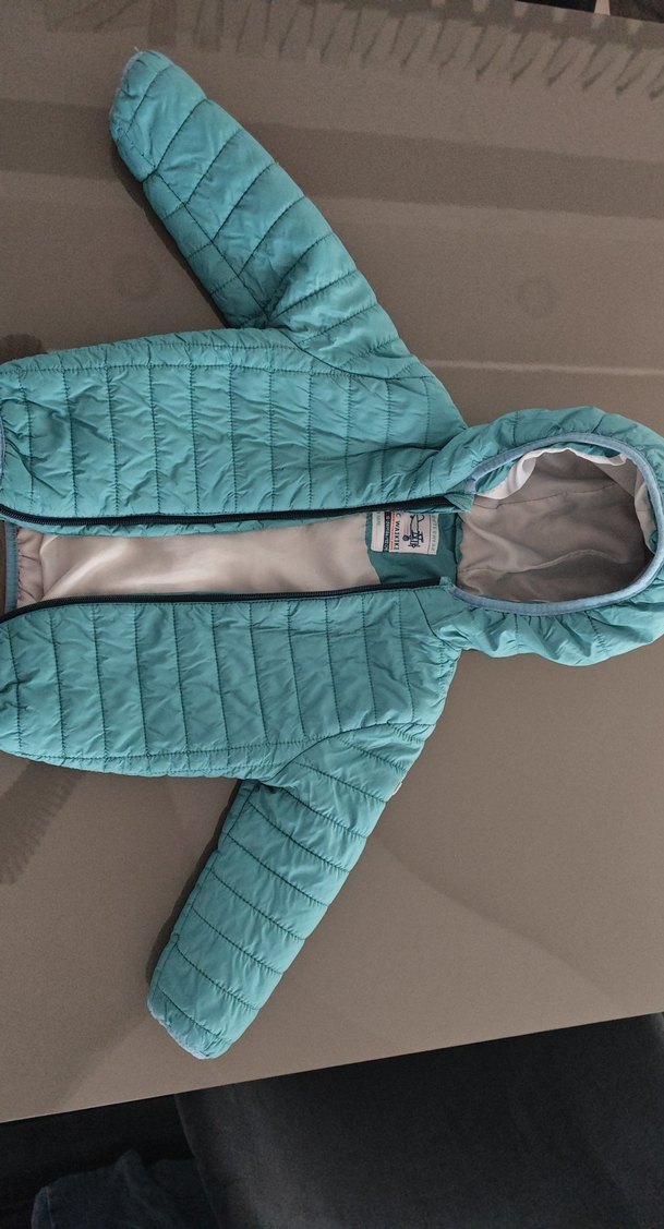 Petrol mavisi renkli, fermuarlı ve kesimli erkek çocuk montu. 18-24 Ay, kapüşonlu ve yağmurluk gibi değil içi elyaf dolgulu ve astarlı. Çok temiz kullanıldı. Hatası yok.