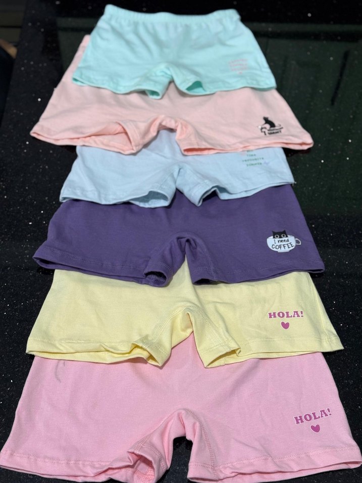 Pastel renklerde, çeşitli baskılı desenlere sahip çocuk boxer külot seti. Bazı parçalar "HOLA!" yazısı içerir. Yumuşak ve rahat kumaşlı.Adet fiyatıdır yaş sorunuz