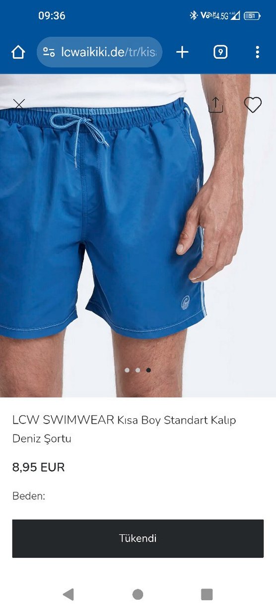 LCW'nin parlak mavi erkek deniz şortu, midi boy ve sade tasarımıyla plaj için rahat ve şık bir seçimdir. Standart kalıptadır ve sportif bir görünüm sunar.