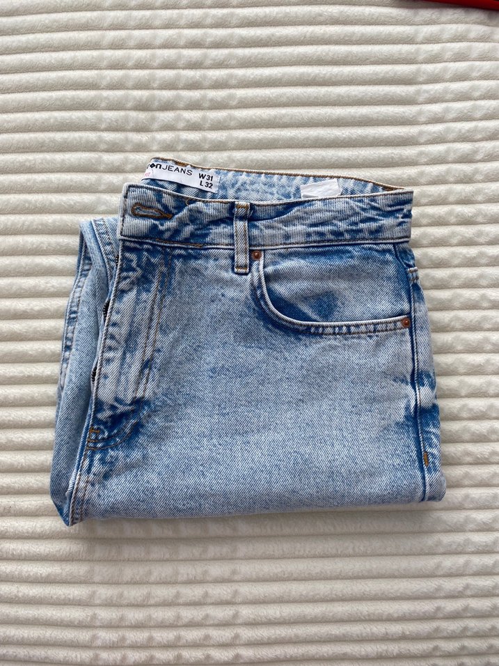 Yüksek bel mavi renkli, kot pantolon. Mom jean modelidir. Günlük kullanıma uygun sade tasarım. Tertemiz kusuru yok sadece 2 kez giyildi hafif esneklik payı var
