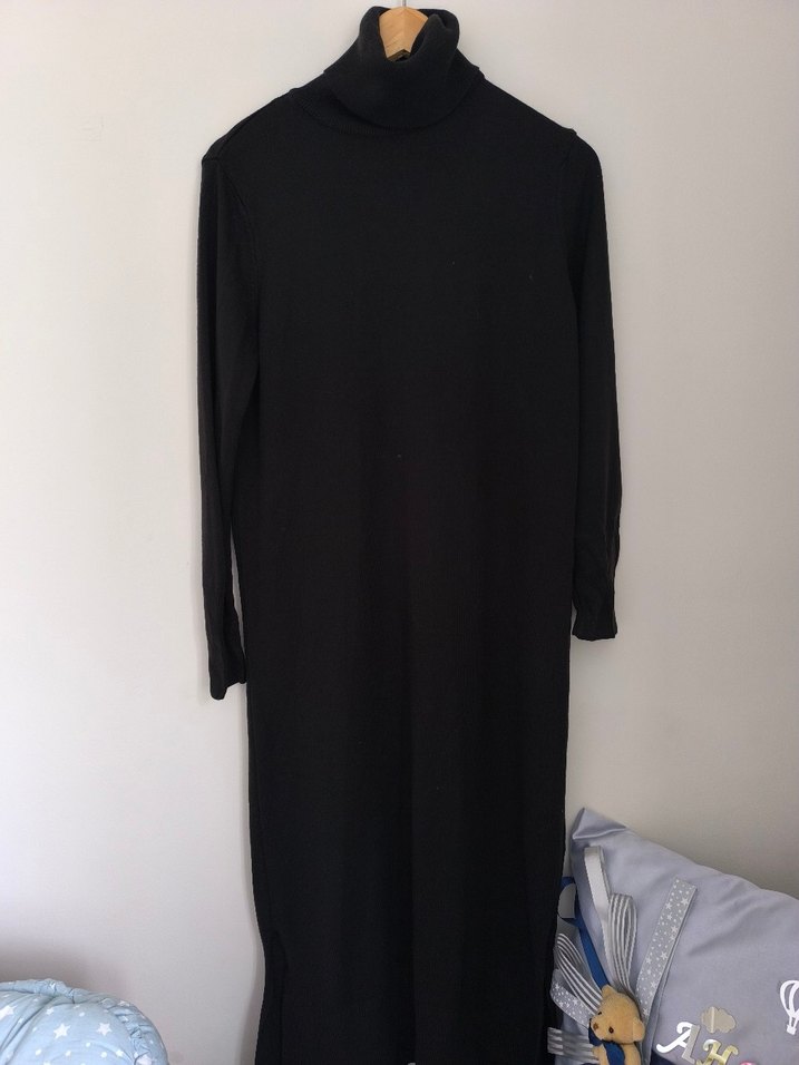 Bu siyah uzun elbise, boğazlı ve uzun kollu, rahat kesimiyle yumuşak ve sıcak kumaştan yapılmıştır. Günlük kullanım için uygundur. LCW Modest elbise ya da kazak. Sadece bir iki kez giyildi sıfır ayarında. L beden fakat M ye de olur