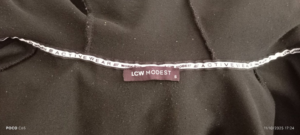 LCW Modest markasına ait siyah uzun fermuarlı ceket.