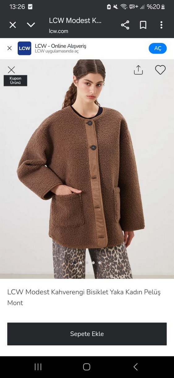 LCW Modest Kahverengi Bisiklet Yaka Kadın Pelüş Mont M-L uyumlu
