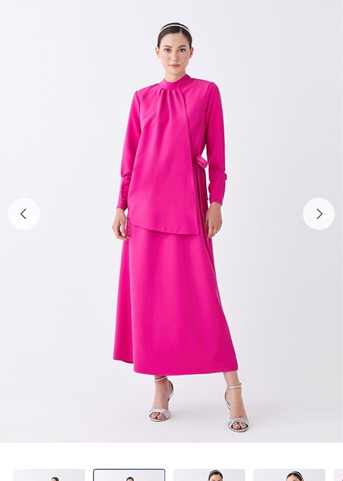 Fuşya Elbise Mevsimlik bir kumaşı var 38-40 beden arası