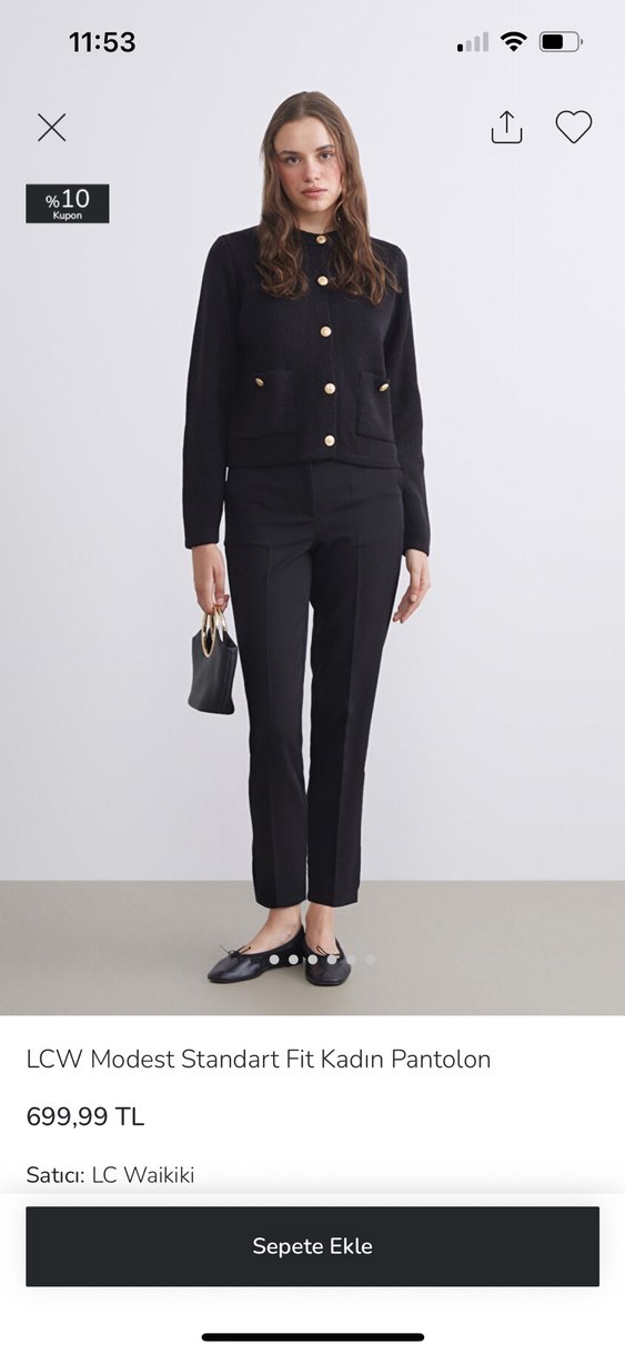 LCW Modest siyah kadın pantolon, standart kesim ve normal boyda olup ofis için uygundur. Desensiz, şık ve rahat tasarıma sahiptir.