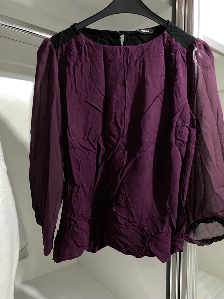 Mürdüm renkli, şifon kollu bluz