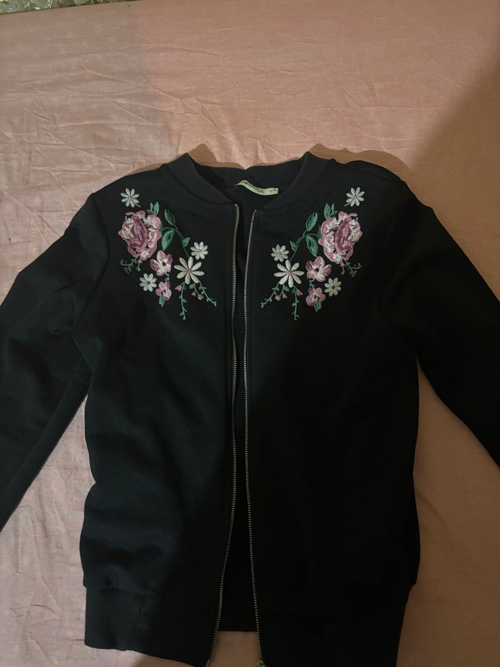 LCW Nakışlı Siyah Fermuarlı Kadın Ceket