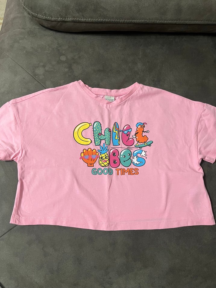 LCW nin tişörtü crop şeklinde fakat ben büyük beden alıp normal tişört olarak giydirmiştim