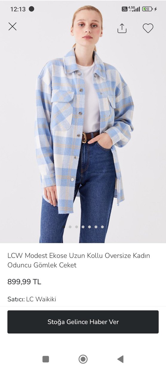 Açık mavi ekose desenli, uzun kollu ve bol kesimden oluşan denim oduncu gömlek ceket. Notlu yakalı ve düğmeli, günlük sokak stili için uygundur. Az kullanıldı