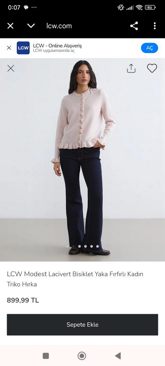 Pastel pembe renkte, uzun kollu ve düğmeli tasarıma sahip bu triko hırka, normal kesim ve midi boydadır. Denim kumaştan üretilmiş olup ofis kullanımı için uygundur.