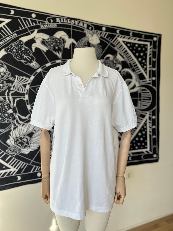 Lc Waikiki beyaz polo yaka t-shirt. XL beden uyumludur. İki koltuk altı arası 58 cm, uzunluğu 68 cm
