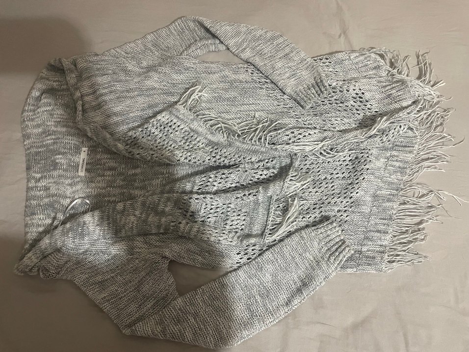 Gri renk ön kısmı ŞAL gibi gözüken püsküllü LCW hırka