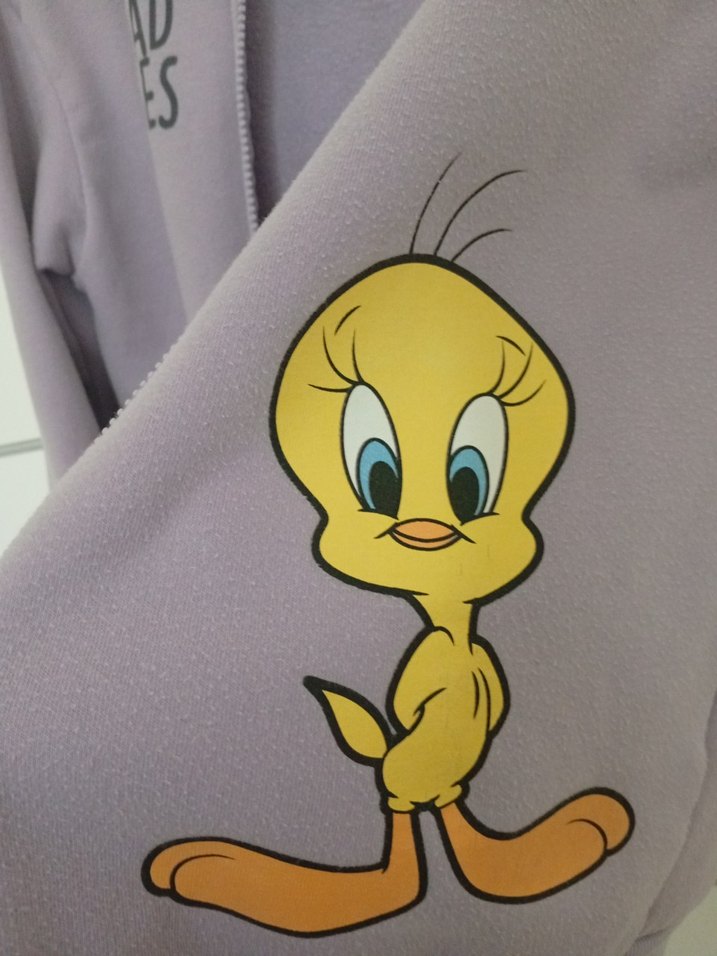 Büyük gözlere ve sevimli ifadeye sahip Tweety karakterli yumuşak sarı peluş hırka