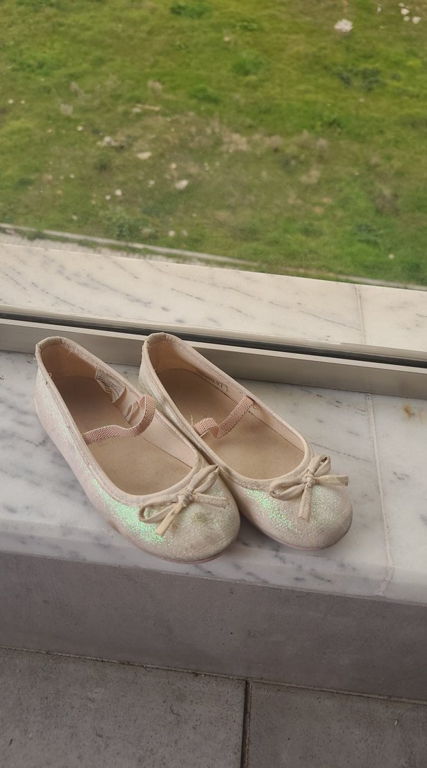 simli Bej renkli kız çocuk babetleri, yumuşak kauçuk malzeme ve önünde zarif bir fiyonk ile klasik sokak stili için uygundur. fiyonktq biraz soyulmalar mevcut onun disinda bir sıkıntısı yok