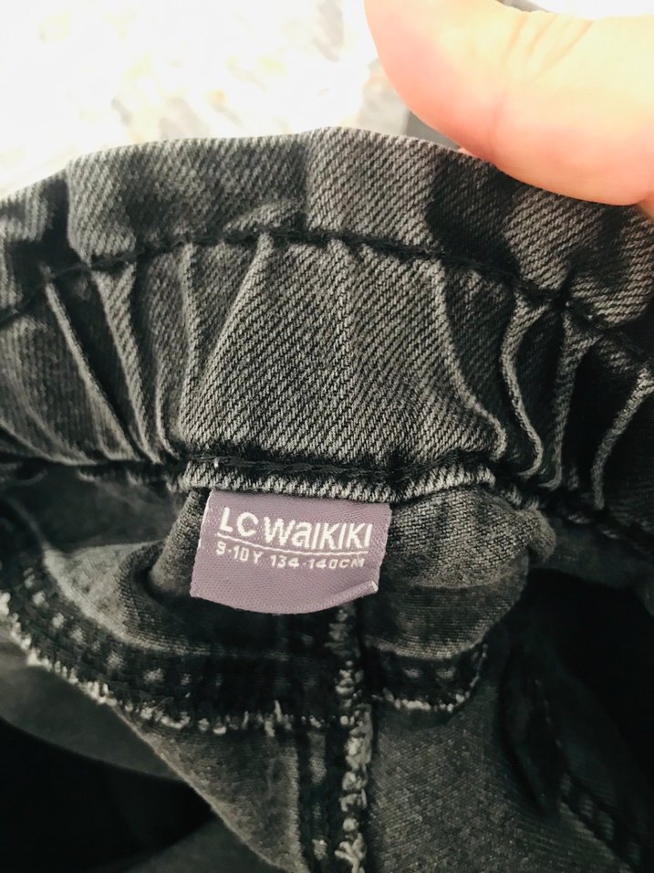 Siyah denim pantolon, düğmeli lastikli detaylı ve bol kesim. Normal boyda, sokak stili havasında. LC Waikiki markasıdır.