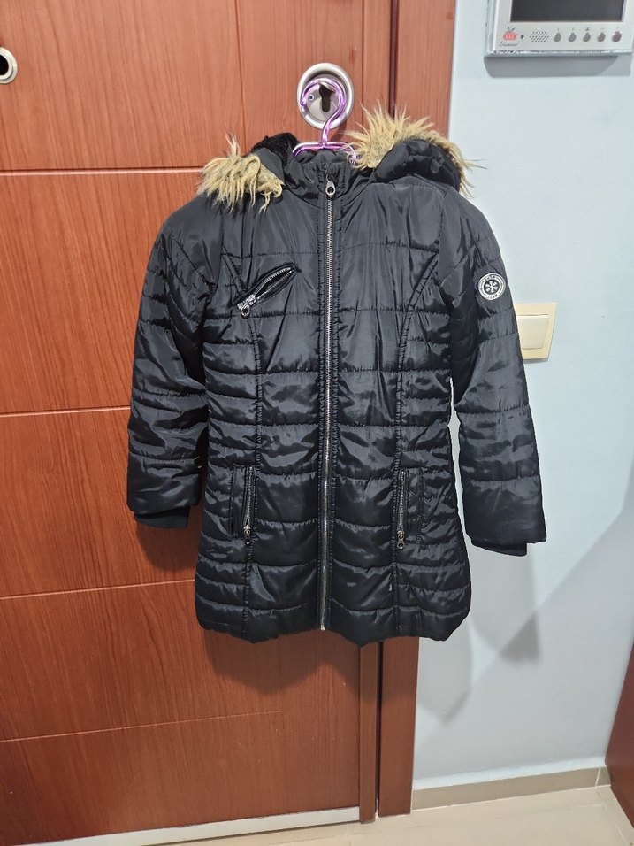 siyah kış montu, kapüşonlu ve kürklü detaylıdır. Uzun kollu, normal midi boyda, yumuşak ve sıcak kumaştan yapılmıştır. 1 minik boya lekesi vardir