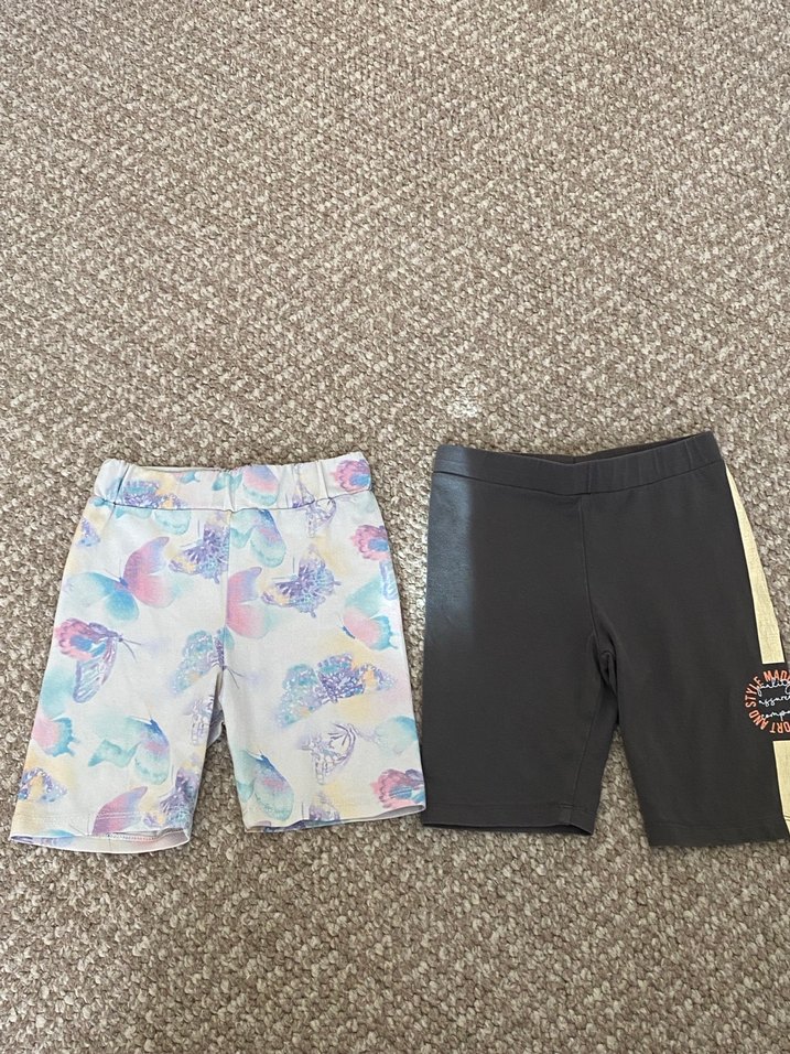 Bağlama desenli pastel ve siyah renklerde, elastik bel bantlı kız çocuk şortları. Yumuşak sentetik kumaştan, trend günlük stil için uygun. ikili şort 5-6 yaş