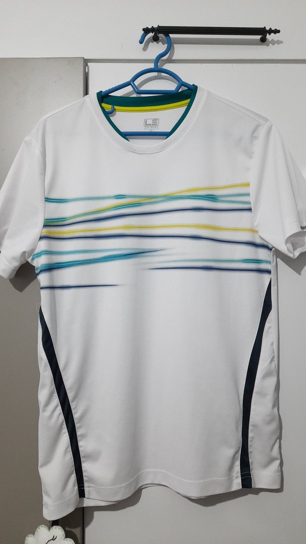 Beyaz renkli, baskılı erkek kısa kollu, yuvarlak yaka tişört. Hafif sentetik kumaştan, sportif ve günlük kullanıma uygun. ⚽ Ürün tertemizdir. Hiçbir defosu yoktur. Fazla ütüleme gerektirmeyen kumaştır. Ürün birleştirme YAPMAYINIZ. Alana hayırlı olsun. İkinci el alışverişle daha temiz ve verimli bir dünyaya.