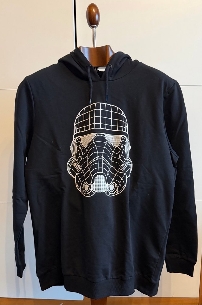 Siyah kapüşonlu, uzun kollu ve bol kesim erkek sweatshirt. XXL size. Hiç giyilmedi etiketi üzerinde. Star Wars için çıkan 2021 koleksiyonundan olması lazım.