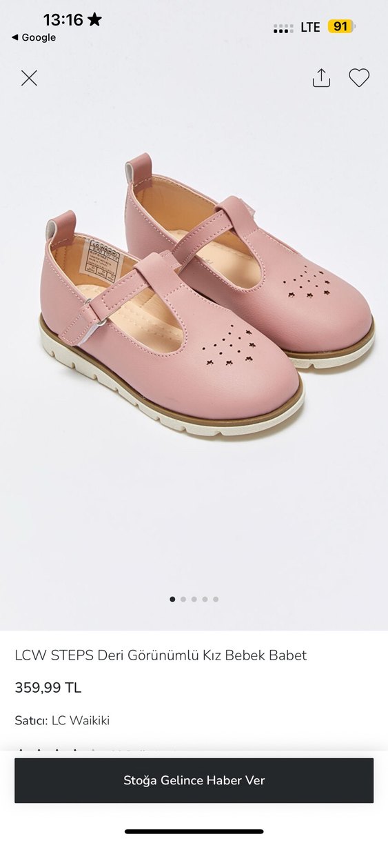 Pembe pastel renkli, tokalı ve deri görünümlü kız bebek babetleri. Yumuşak kauçuk taban ve ön kısımda küçük yıldız delikleri bulunur. Rahat ve sade tasarım.