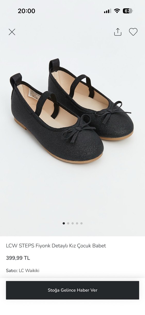 LCW STEPS Kız Çocuk Siyah Fiyonk Detaylı Babet