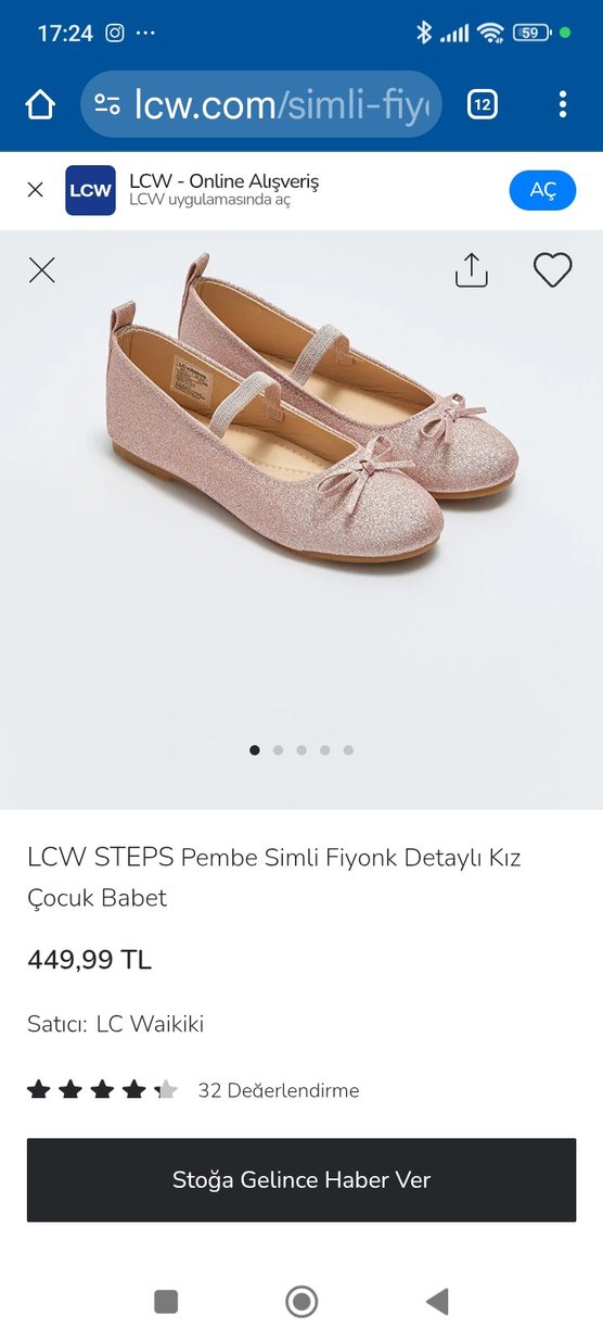 LCW STEPS Pembe Simli Fiyonk Detaylı Kız Babet